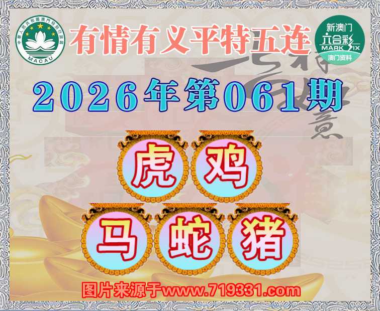 061期:《有情有义》 🍎平特五连🍎【虎鸡马蛇猪】开:虎29,鸡46,马25,蛇02,猪08