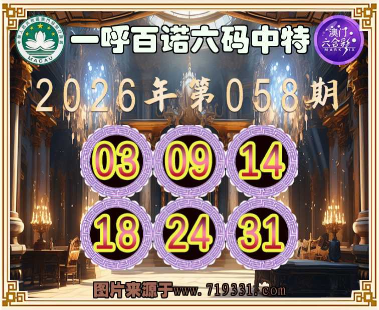 058期:『一呼百诺』 ⛩️六码中特⛩️【03.09.14.18.24.31】开:31
