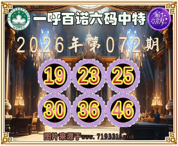 072期:『一呼百诺』 ⛩️六码中特⛩️【19.23.25.30.36.46】开:46